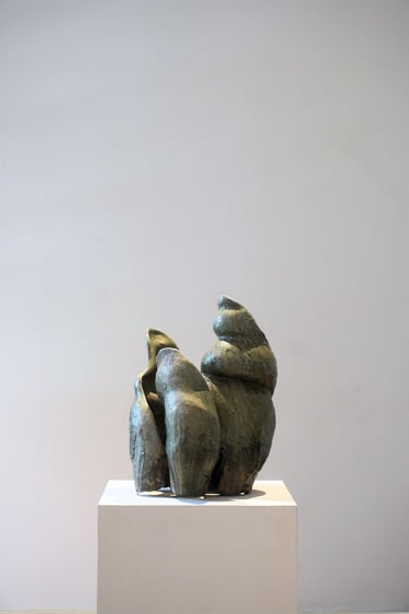 The ceramic and glass pieces on display are the result of creation driven by spontaneity. During the exploration phase (of the various techniques and forms) I adopted a way of ‘doing’ based on ‘feeling’, in the present moment. The form or image arises, not from rational thought, but from instinctive movements.