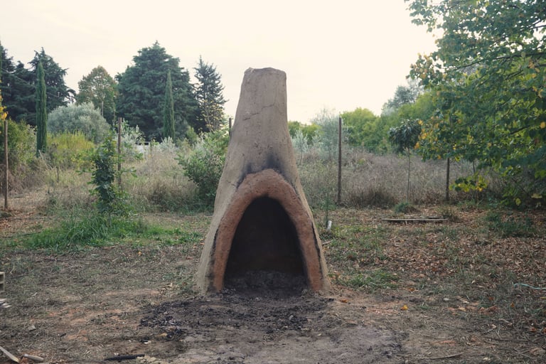 habitable sculpture | construction in raw clay (adobe) fired inside | interior finishing with terra sigillata